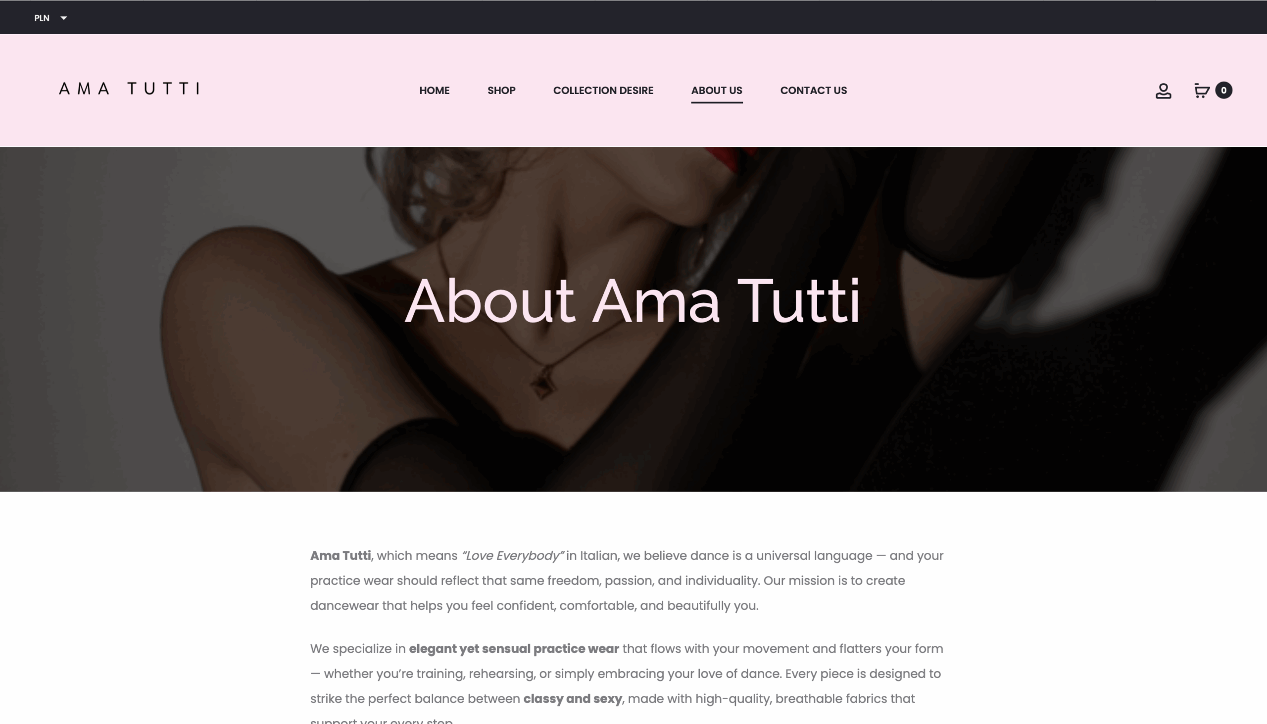 For Ama Tutti, a brand specializing in exclusive dancewear, I created a refined and modern website that captures the essence of the brand and highlights its elegance, quality, and unique character.