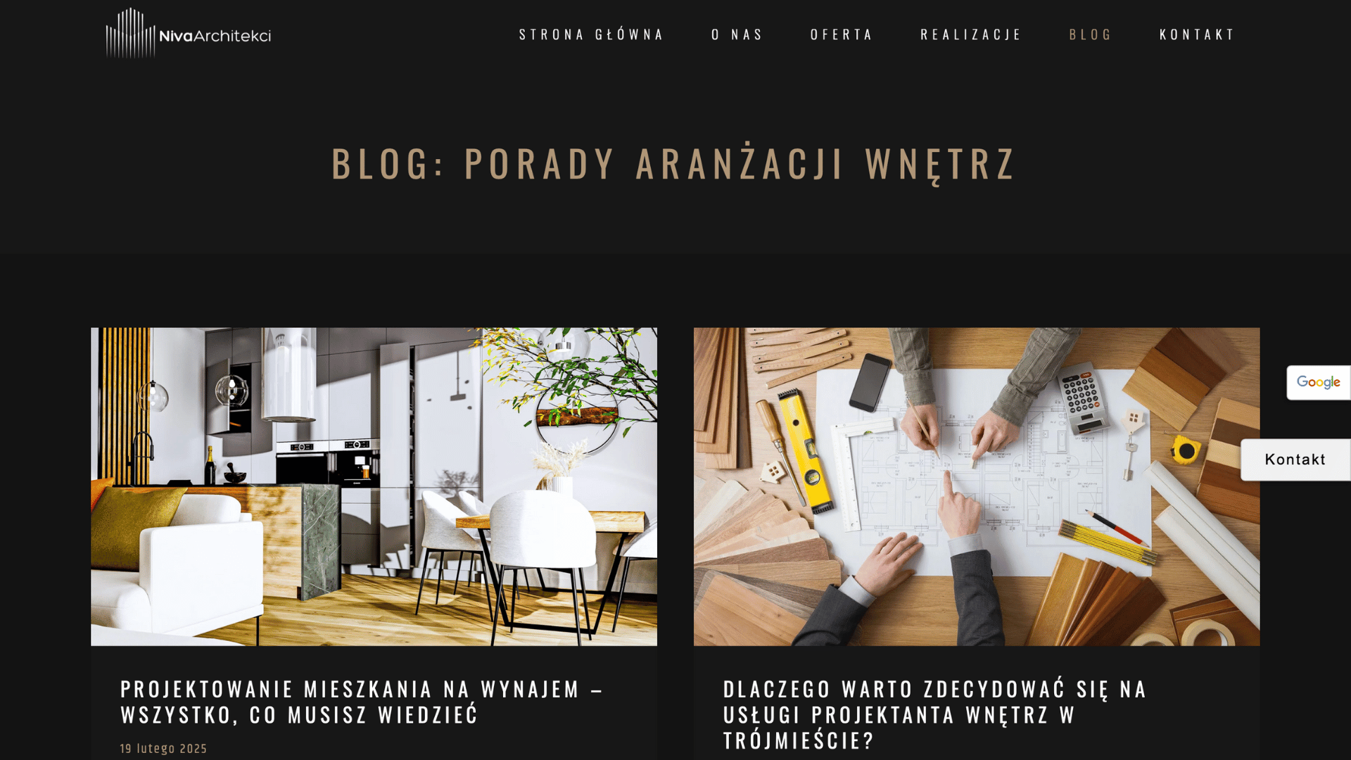 For Niva Architects an interior design and architecture studio based in the Tricity area, I created a refined and modern website that reflects the studio’s professionalism, creativity, and client-focused approach.
